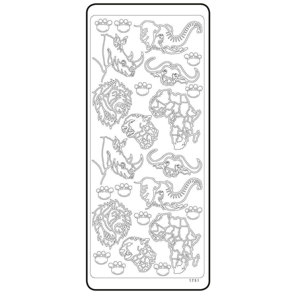 Ääriviivatarra-arkin koko 10 x 23 cm.
