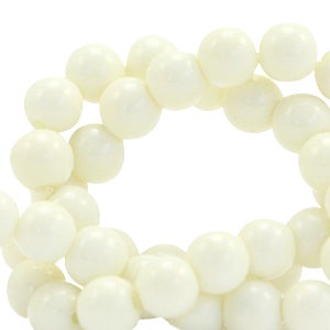 Tasavärinen, läpikuultamaton (opaakki) lasihelmi. Koko 6 mm. Useita eri värejä. Pussissa noin 40 kpl.